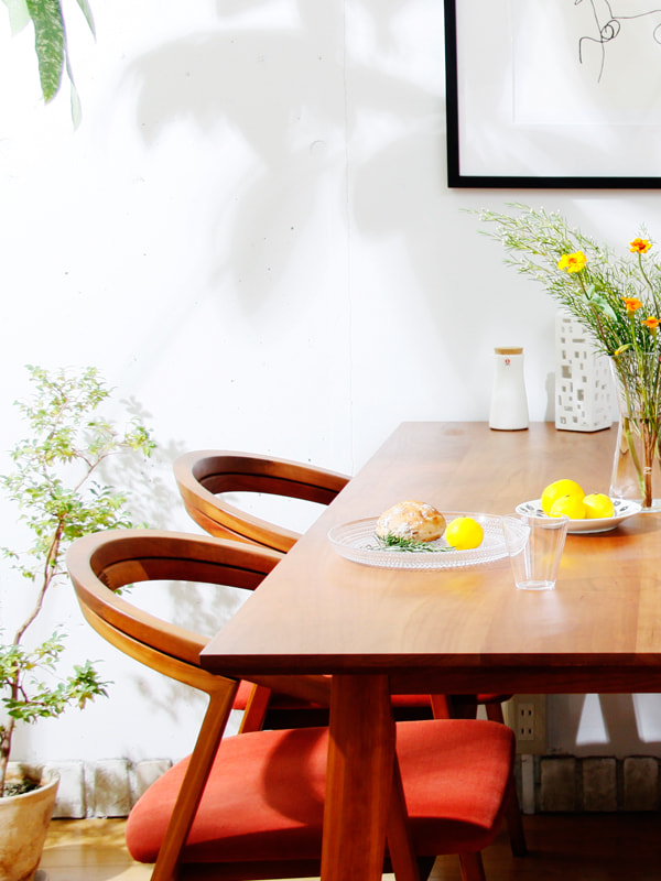 - ブラックチェリーというと赤味を帯びた濃い色を想像されると思いますが、家具の完成直後は比較的明るい色味をしています。陽の光が当たることで、大きく色味を変えていくブラックチェリーは木という素材の魅力を存分に感じて頂けます。