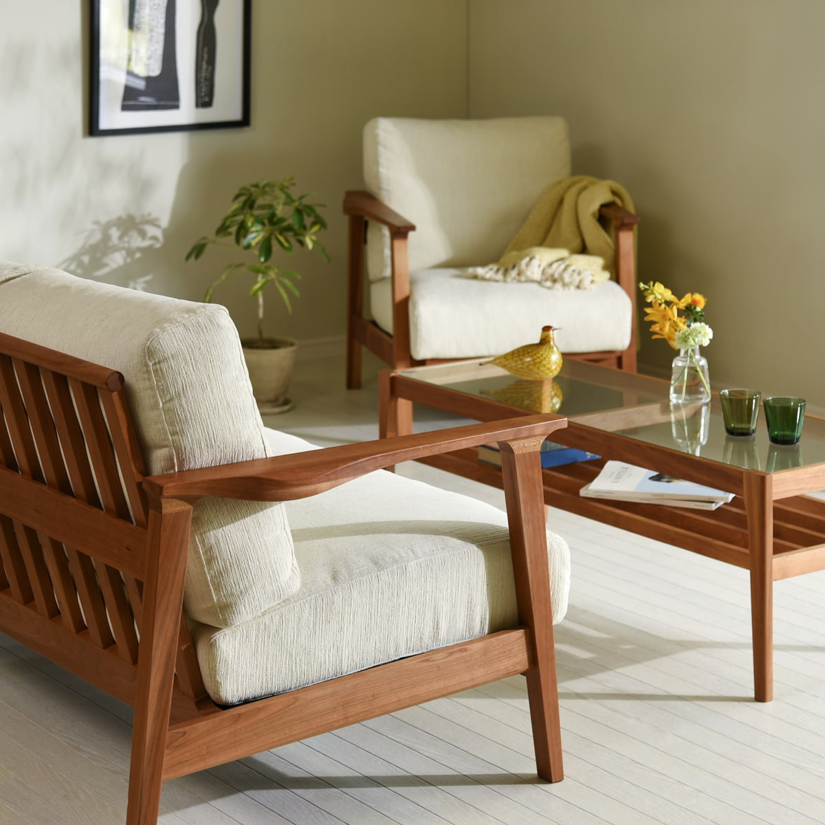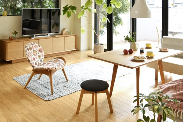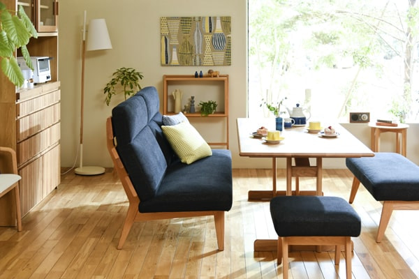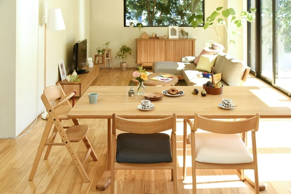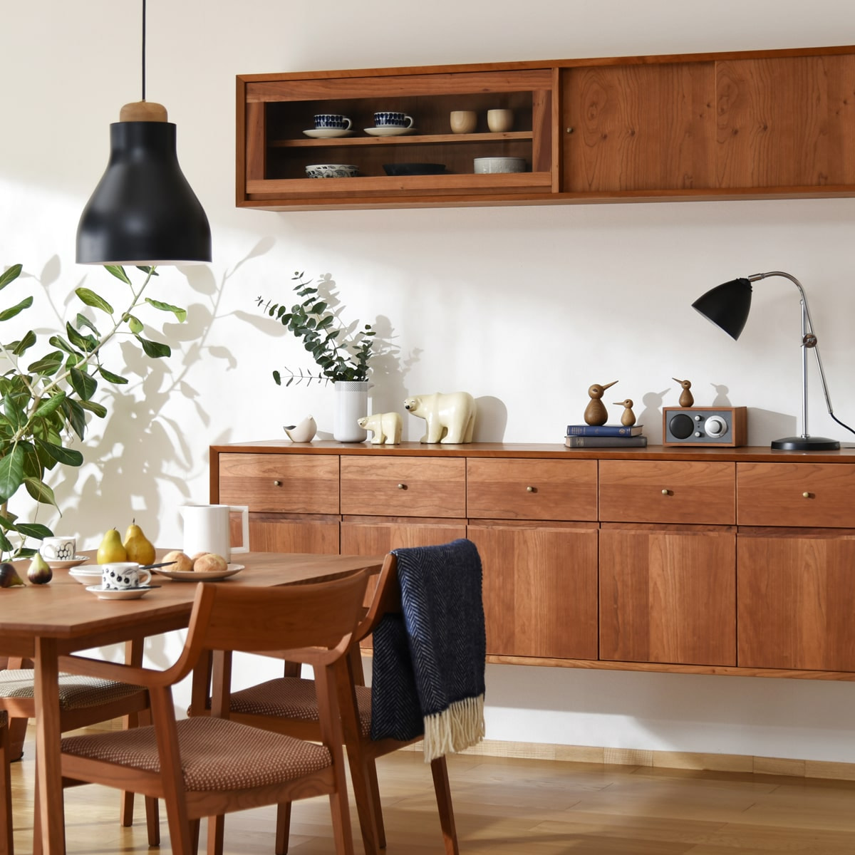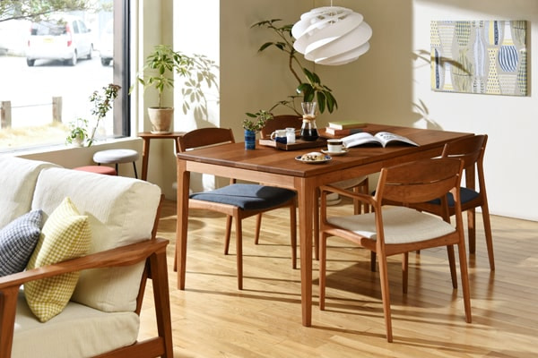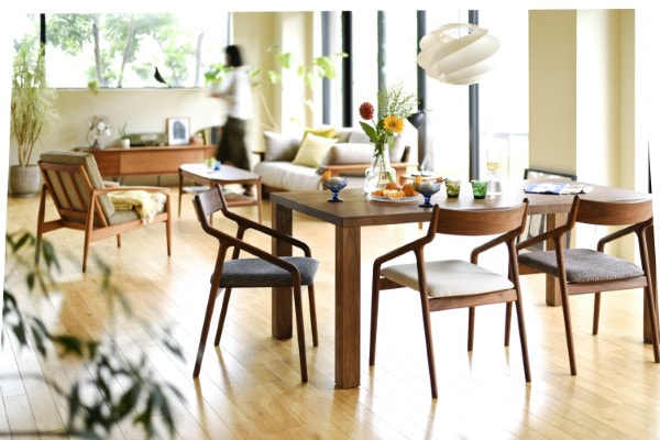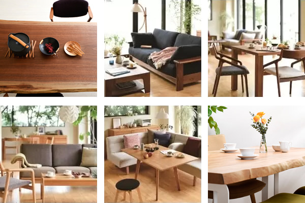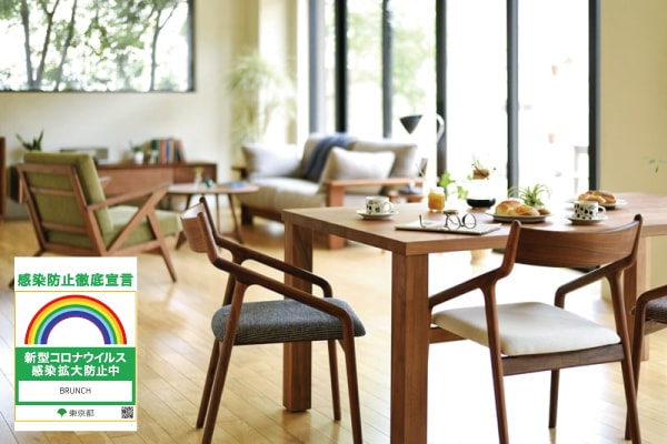 BRUNCH東京目黒本店には各コンセプトごとに展示家具商品数300点以上を取り揃えております。 木の種類別に世界観を見比べながら、北欧テイスト(ブラックチェリー)、高級感のあるラグジュアリー空間(ウォールナット+本革)、カジュアルな雰囲気のお部屋(オーク材+鮮やかなファブリック)や、一枚板天板のあるインテリア等々、豊富な選択肢の中からお選びいただけます。 樹種やインテリアのイメージによって分けられた各ブースにBRUNCHの特別な思いが詰まっています。