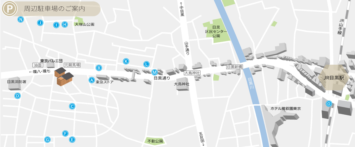 東急バス(黒01・黒02・黒07・黒06)目黒駅→元競馬場 バスで5分