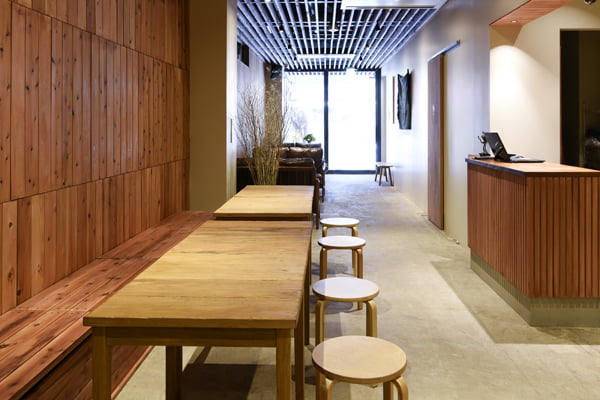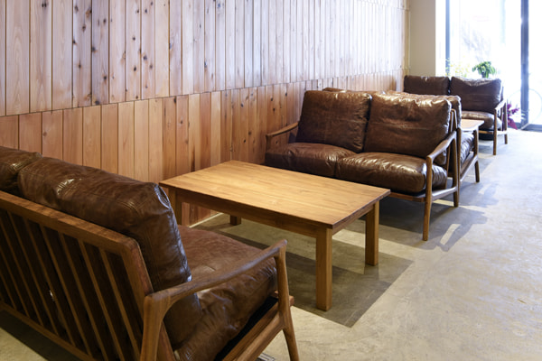 もともと会社用オフィスとして使用されていたビルをリノベーションした1階ラウンジには、和と洋のテイストがマッチした温かみある空間がひろがります。