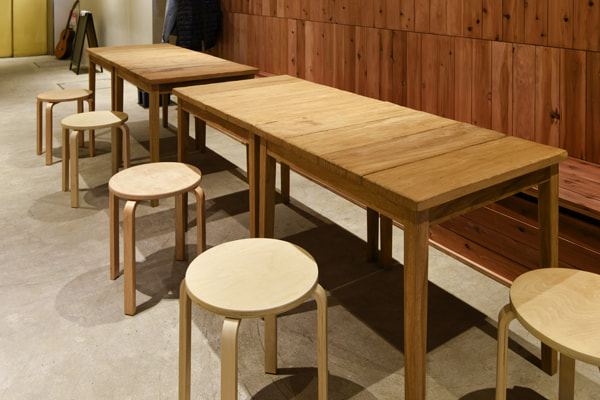 2017年4月に新しくオープンした中央区東日本橋にあるホステル「obi Hostel」様。1階に併設されているカフェ・バーにソファ、ローテーブル、ダイニングテーブル、ベンチをご納品させていただきました。