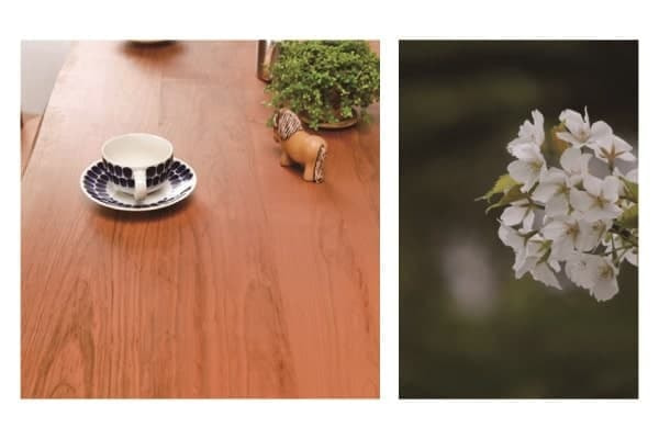 アメリカンチェリーがなる木のブラックチェリー。特徴はなんといっても木目の色合いの変化です。 時間が経つにつれ光沢ある赤みを帯びていきます。家具以外で有名なのは映画「Shall we ダンス?」の 舞台となったダンスホールの床材です。