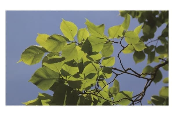 針葉樹とは対照的に、大きく開いた葉を持つ広葉樹。針葉樹に比べて幹は太く、曲がっていることも多くあります。