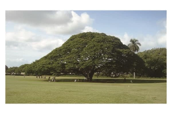 サルがモンキーポッドになる実を好んで食べることが名前の由来。 その実が鞘(さや=英ポッド)にはいっていたためモンキーポッドと呼ばれます。 寒さに弱く日常生活の中ではなかなか見かけることがない木ですが、実はとてもよく知られた木です。 その理由は日立のCM。